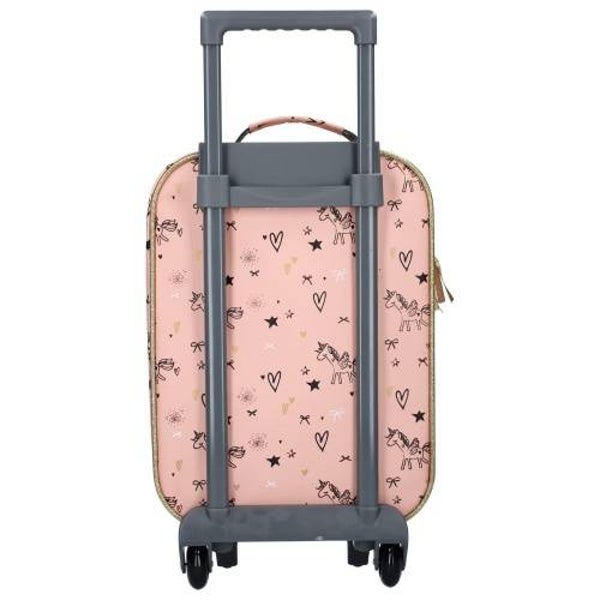Little girls will love Kidzroom Fearless. Deze roze trolley koffer uit de Kidzroom Fearless collectie laat een super cute print zien en heeft het ideale formaat voor een logeerpartijtje voor de allerkleinsten, maar ook grotere kleuters. De shiny details rondom de rits geven de kindertrolley een sparkling effect. De trolley koffer met uitschuifbare telescopische trektstang is gemakkelijk te rollen of aan de lus aan de bovenzijde te dragen.