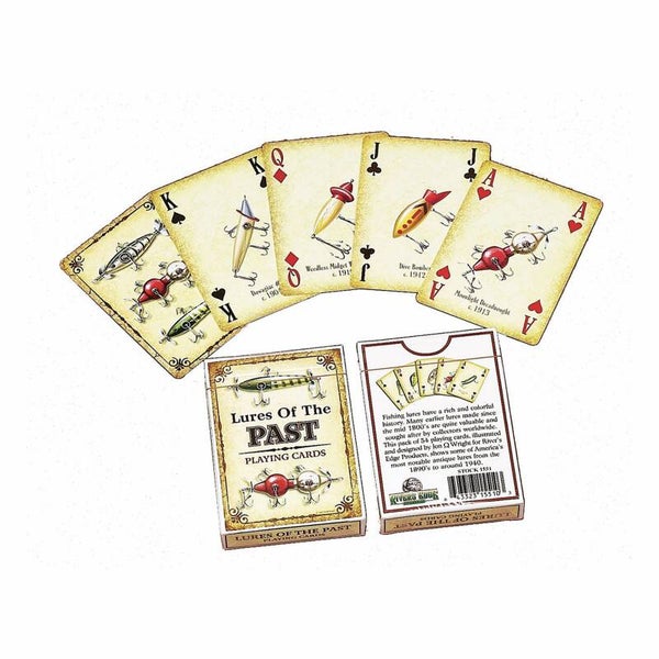 De antieke kunstaasspeelkaarten tonen kunstwerken van antiek kunstaas uit het verleden met dank aan JQ Licensing. deze kaarten zijn volledige set van 54 speelkaarten. Elke kaart toont een ander antiek kunstaas en het jaar waarin het is gemaakt. Zorgt voor een perfect cadeau-idee voor elke enthousiaste visser of buitenenthousiast.