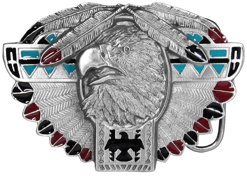 Zeer mooi afgewrkte Buckle met een arendshoofd met rondom veren.